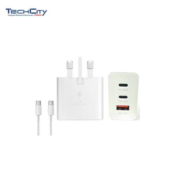 65W PD POWER ADPATER TRIO USB-Cx2 PORTS & USB-A PORT (WHITE)
